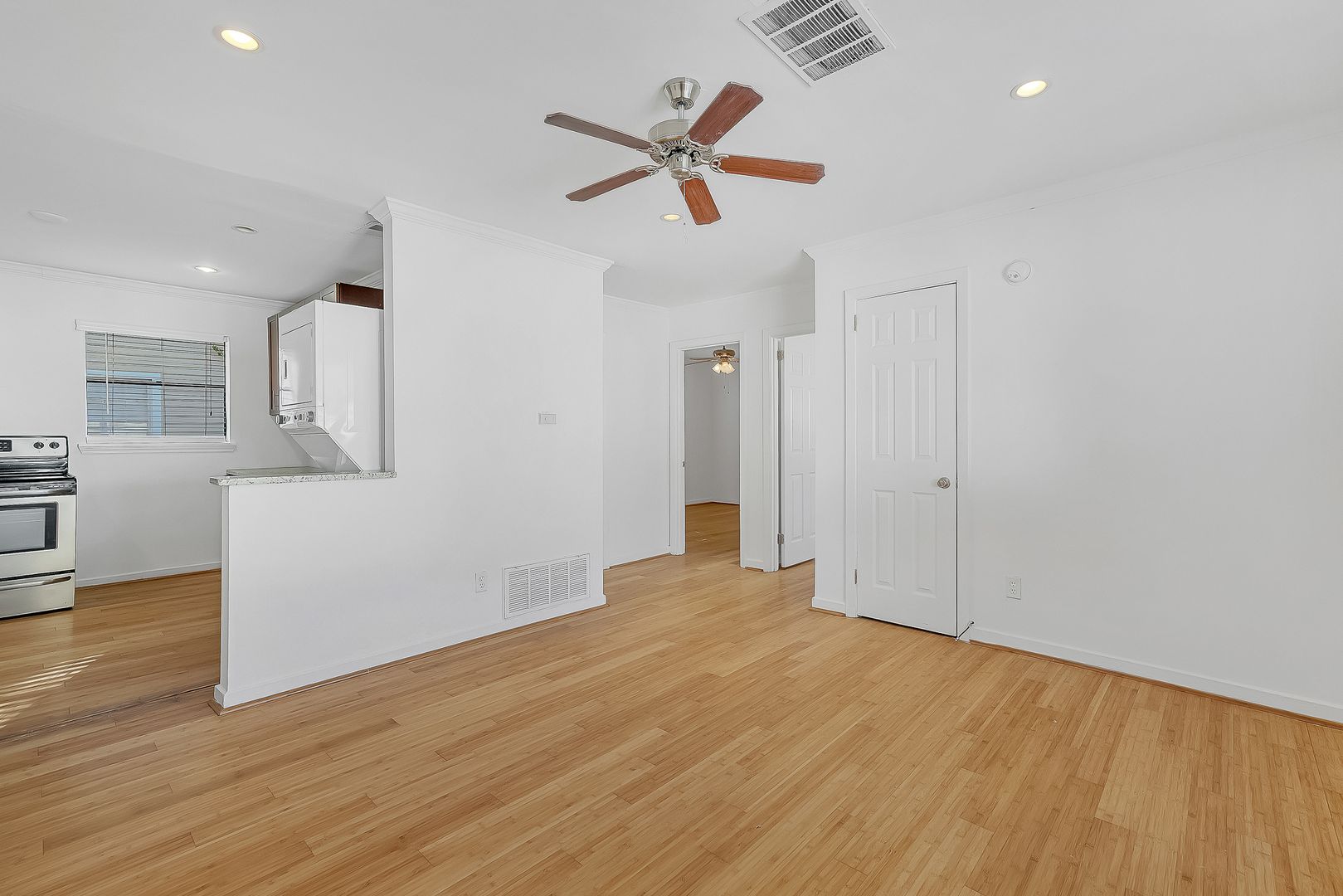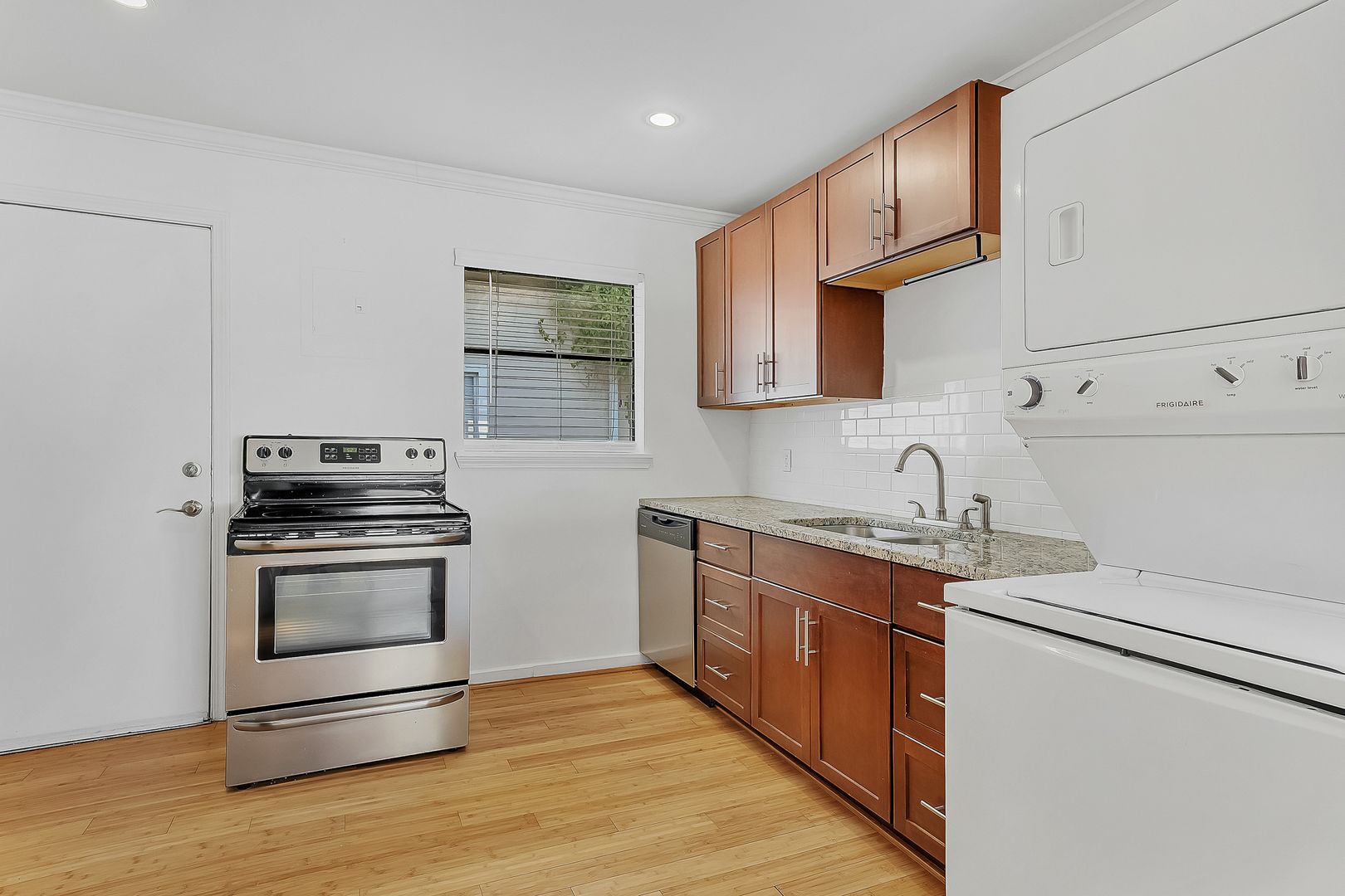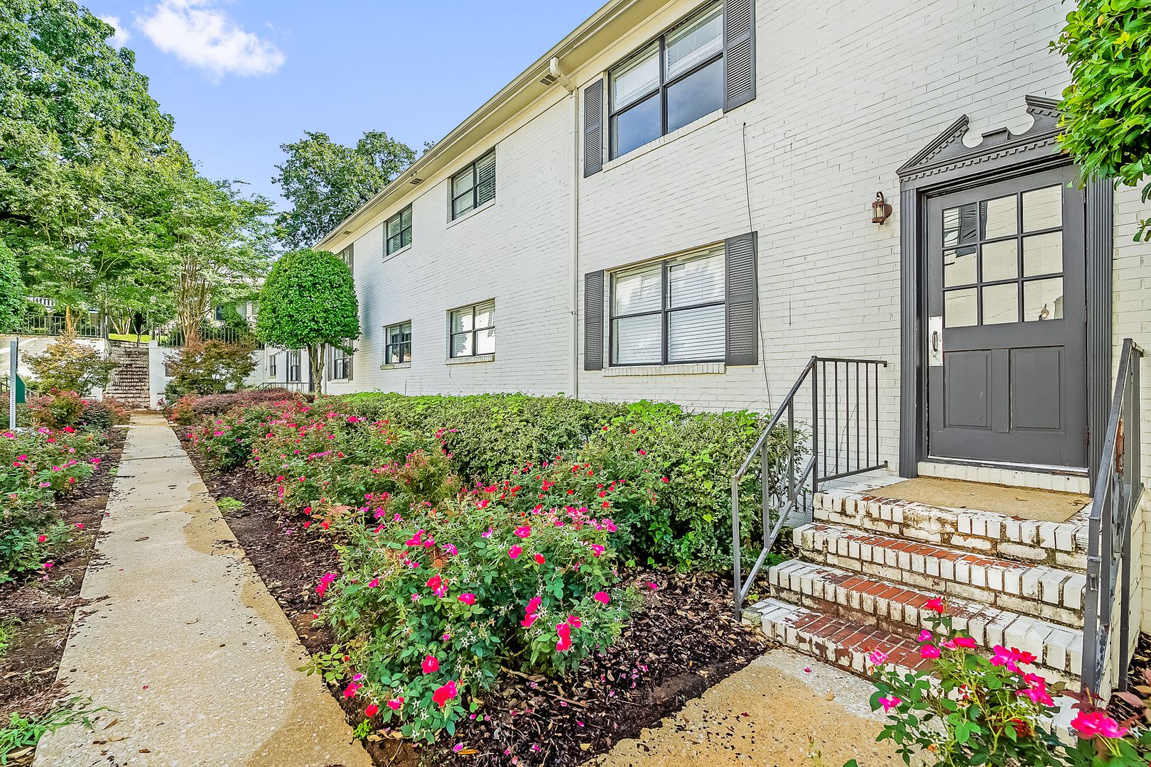 These apartments are tucked away with a beautiful courtyard. The units feature off-street parking, hardwood floors throughout, granite countertops, a washer and dryer in the unit, and updated appliances.