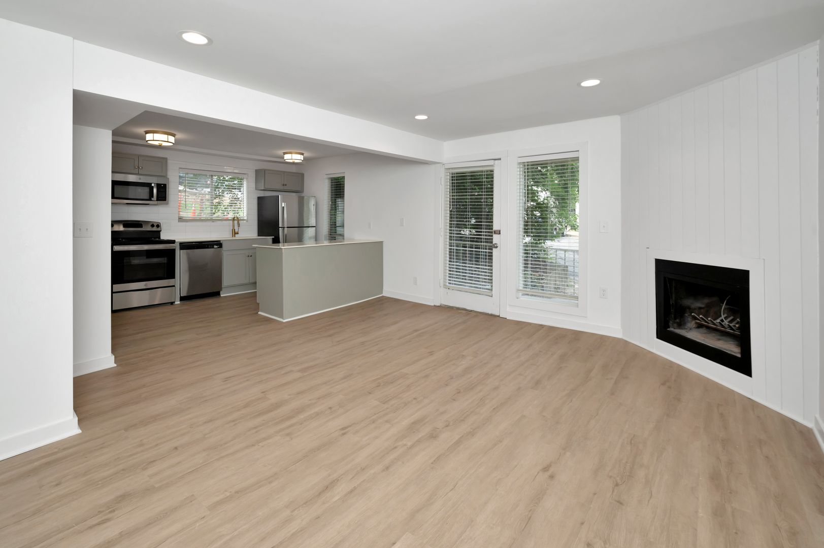 Caribou is a recently renovated property in Highland Park. Each apartment has a kitchen island with granite countertops, modern light fixtures, a washer/dryer, off-street parking, and a fireplace. These apartments were renovated in 2022 and are some of our most in-demand. If we do have one available, be sure to apply as soon as possible, because these do not last long!