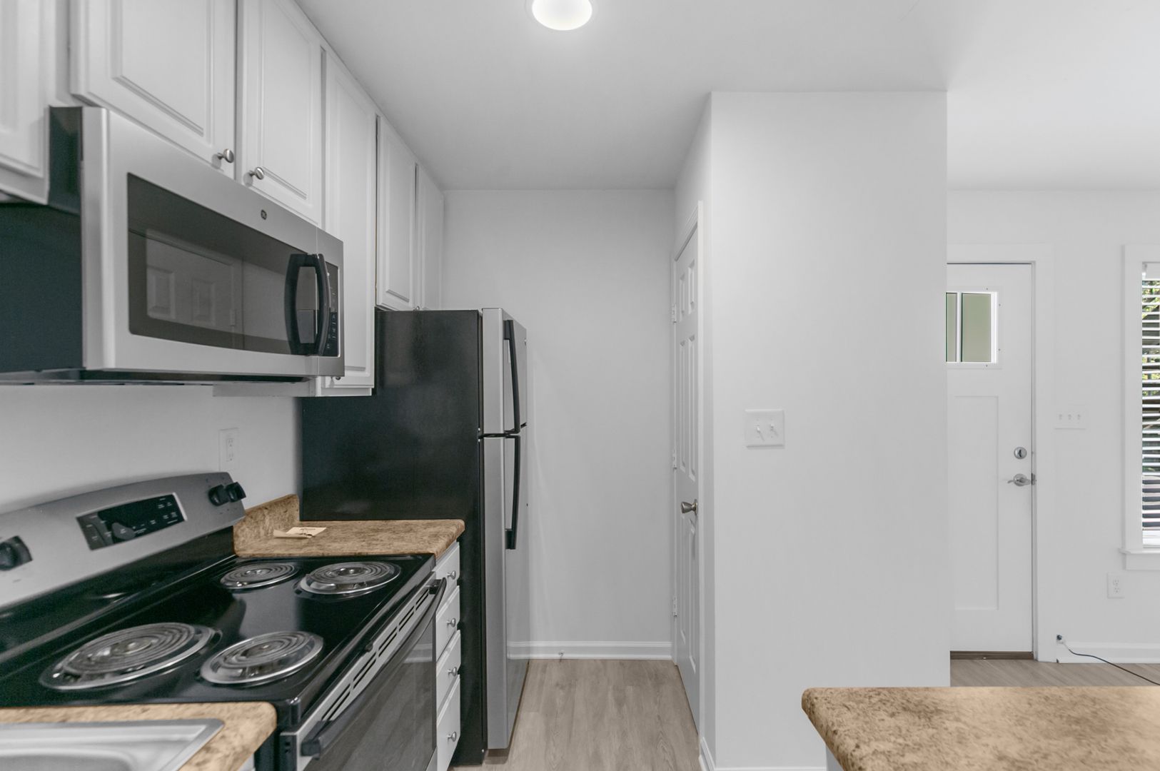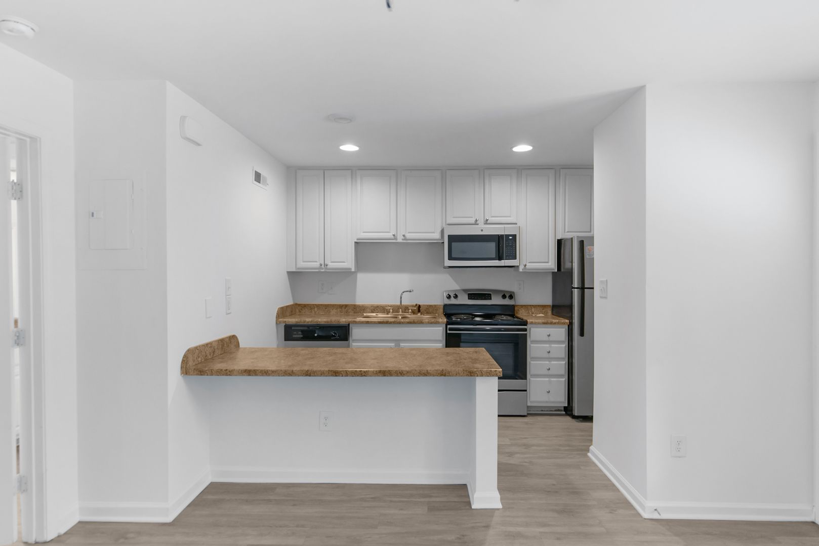 These apartments feature an in-unit washer/dryer, a walk-in closet, vinyl flooring throughout the apartment, updated appliances, and remodeled finishes.